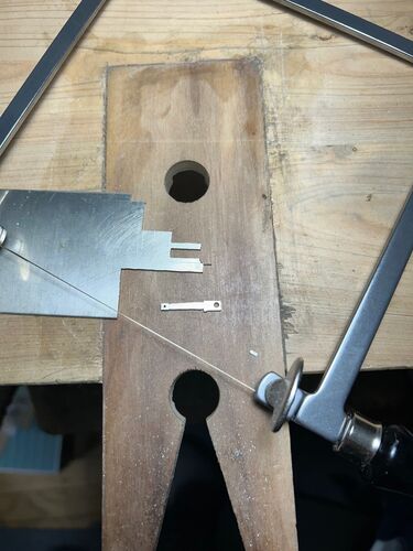 右側のサイドロッドを切り出し中。新しい糸鋸の使い勝手はよしよし。
